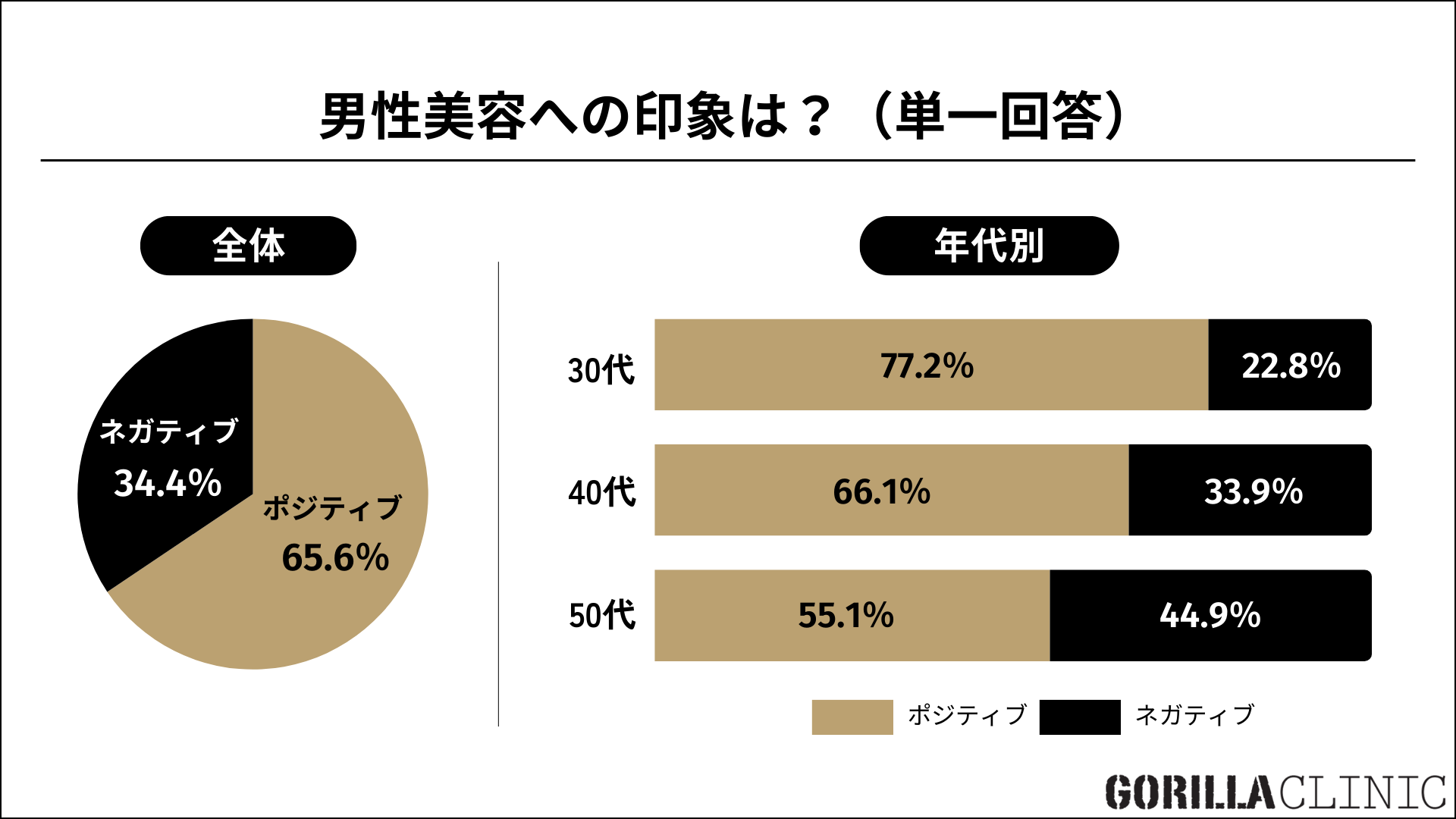 年代別では30代で77.2%、40代で66.1%、50代でも55.1%が好意的な印象を持っていることが分かりました。