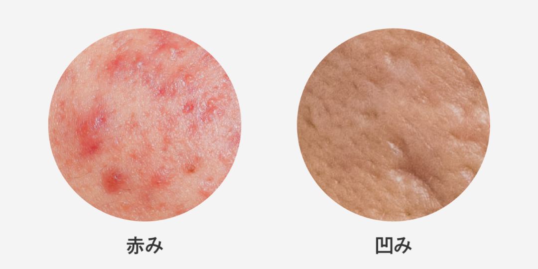 ニキビ跡には、大きく分けて赤みが残るものと凹みが残る2つ部類に分かれます。特にニキビ跡の赤みは、ニキビと間違えてしまう方がいます。ニキビを治そうとして過度に洗顔をしたり刺激の強いスキンケア用品を使うとニキビ跡が悪化してしまいます。ニキビかニキビ跡か迷った場合はクリニックへ相談しましょう。