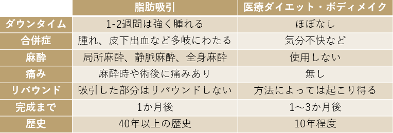 脂肪吸引と医療ダイエット・ボディメイクの違い