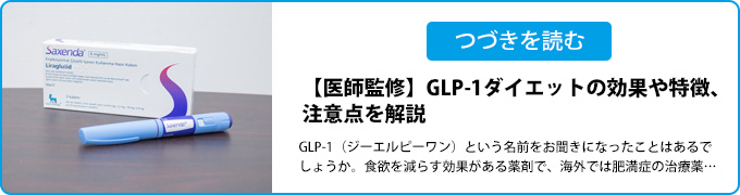 GLP-1製剤(サクセンダ®やビクトーザ®)はインスリン分泌を促し血糖を下げる効果があります。その他、消化管や中枢神経に働きかけ、胃の蠕動運動を遅らせたり食欲を抑えたりする作用があります。