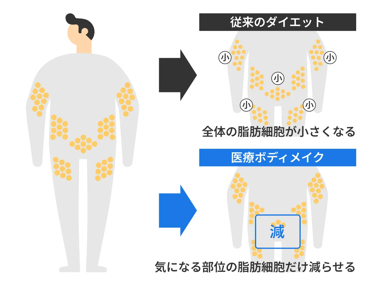 しかし医療なら気になる部位の脂肪を細胞から除去することが可能です。エステマッサージでも部分痩せを謡う施術はありますが、むくみは取れても脂肪細胞を減らすことはできません。