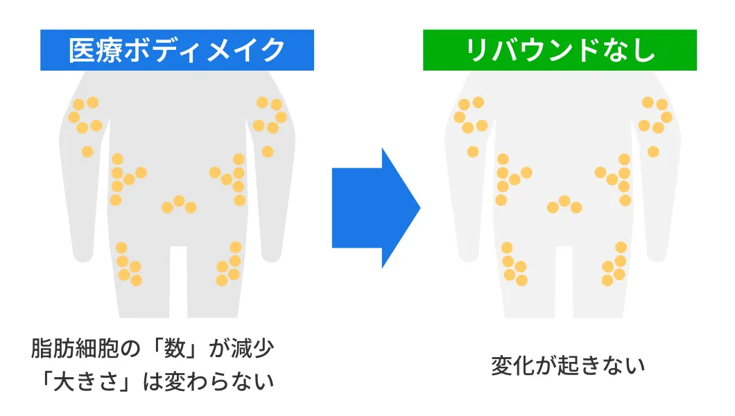 一時的に減らすだけではなく、体型維持までを見据えた医療ボディメイク治療として検討される男性が増えています。リバウンドの仕組み
